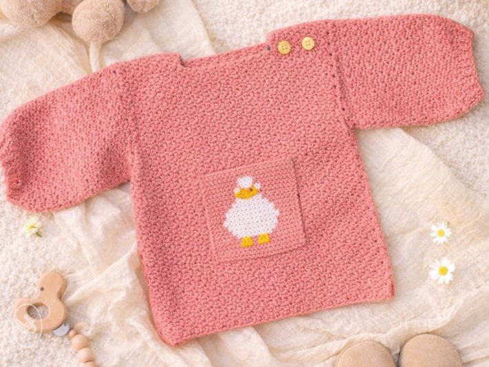 Babytruitje met eendje - gehaakt - Durable Cosy Extra FineBABYTRUITJE MET EENDJEHaak zelf een schattig babytruitje met eendje met dit haakpatroon. Het ontwerp is gemaakt met Durable Cosy Extra Fine, een zacht en comfortabel garen dat perfect is voor babykleding.