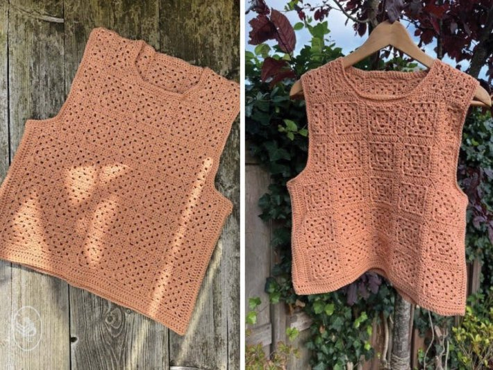 Deze retro spencer heeft de old-school look, maar dan met een frisse, moderne twist. Draag de spencer over een oversized blouse of een strak T-shirt en je bent klaar— cool, een tikje eigenwijs en helemaal van nu. De spencer is gehaakt met Durable Cosy extra fine in kleur 2209 Camel volgens het patroon van de Retro Squares Tank top.Voor maat 4 (voorbeeld) zijn 5 bollen gebruikt.