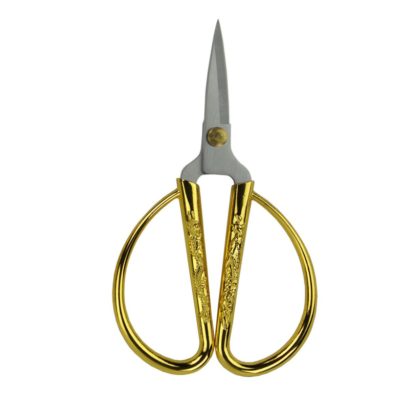 Voorzien van een scherpe punt is deze schaar breed inzetbaar. De reliëfversiering en de gouden handvaten in specifieke vorm maken het een bijzondere en stijlvolle schaar.