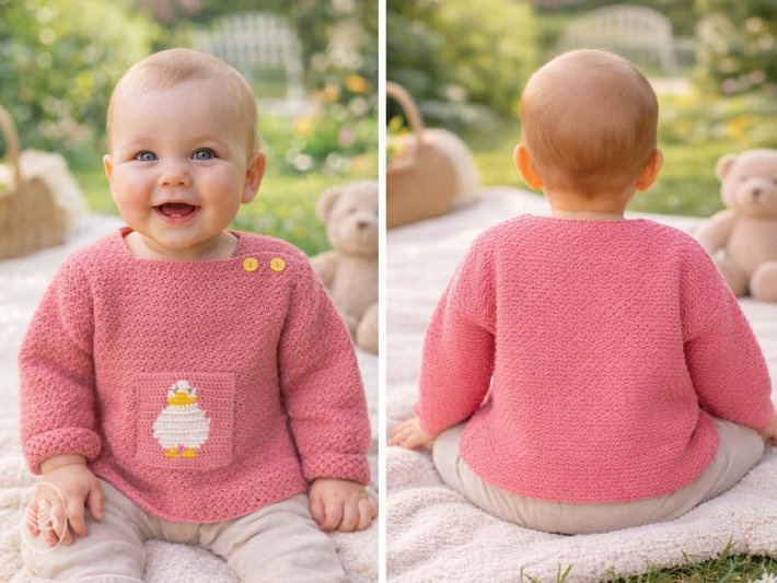 Dit haakpatroon is geschikt voor beginners en gevorderden en ideaal als kraamcadeau of handgemaakt babyitem. Het gehaakte eendje geeft het truitje een speelse en unieke uitstraling.