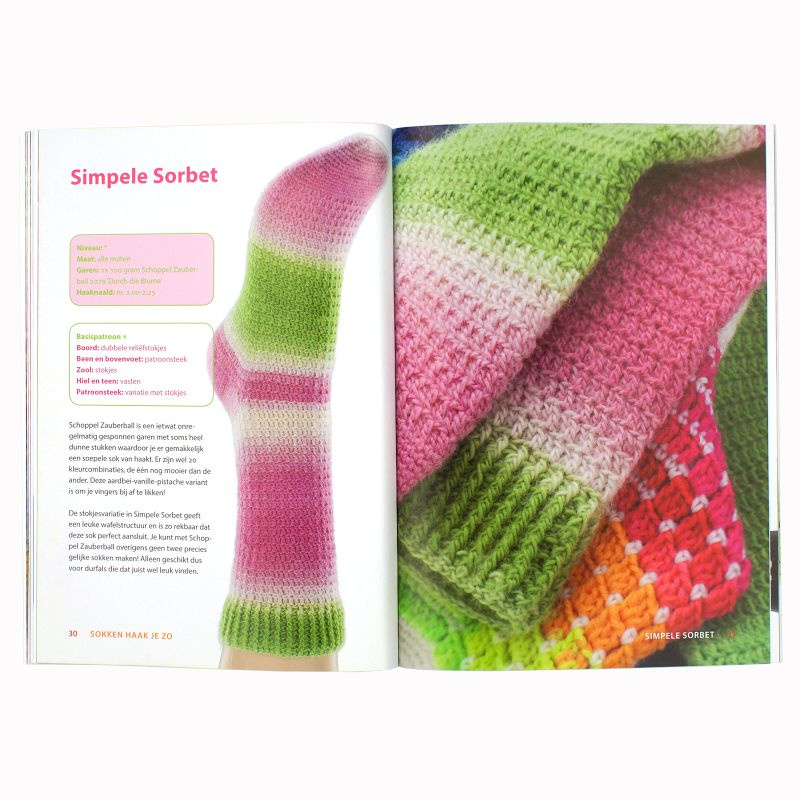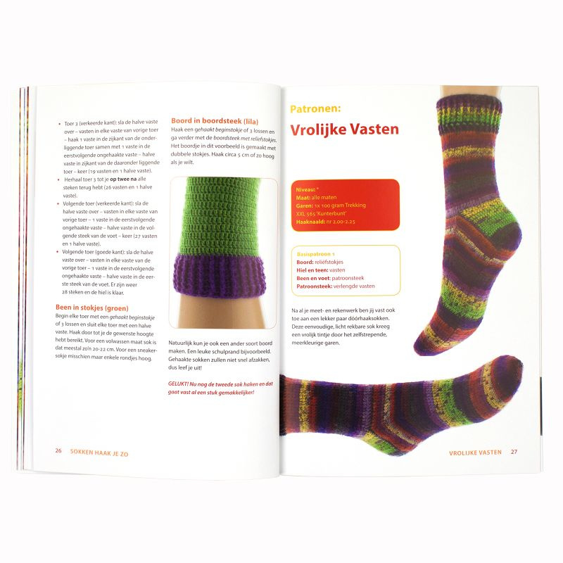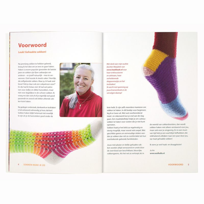 Zelf sokken maken was tot nu toe iets voor de breiers. Jo An Luijken heeft daarvoor eerder de zeer succesvolle boeken Sokken brei je zo! en Sokken van teen tot boord geschreven. Nu heeft ze technieken ontwikkeld om gehaakte sokken te maken, die ook nog een goede pasvorm hebben en lekker zitten aan je voeten. In dit boek legt ze uit hoe je met lossen, vasten, halve stokjes en stokjes de sokken kunt haken. Het begint al met de speciale techniek van de opzetstokjes, waarmee je een soepel en rekbaar boordje kunt haken. Vervolgens legt ze op haar bekende heldere wijze uit hoe je stap voor stap de hele sok opbouwt. Ook dit boek wordt (net als Sokken brei je zo!) een must have voor iedereen die met een bol sokkenwol en een haaknaald een paar lekkere warme sokken wil maken. |