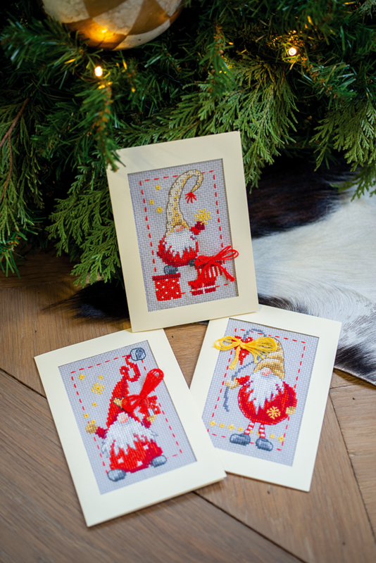 Kerstkabouters Wenskaarten Set | Aida | Vervaco