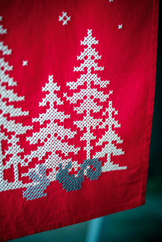 Kerstbomen en bosdiertjes | voorbedrukte loper | Vervaco