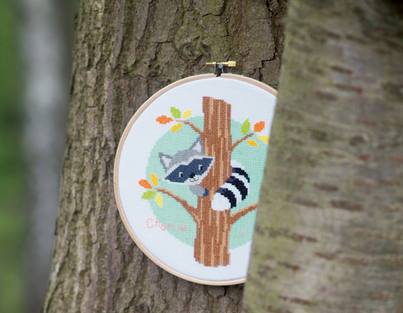 Wasbeer in Boom met Borduurring | Aida Telpakket | Vervaco
