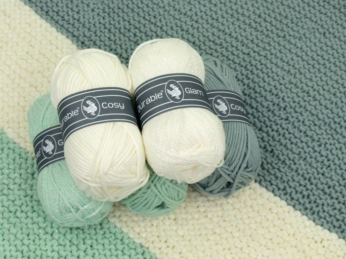 Het Durable Cosy garen is heel geschikt om een omslagdoek mee te breien. In dit patroon is een draadje Glam in de kleur van de Cosy meegebreid. Dit geeft een mooi subtiel glanseffect aan de sjaal.