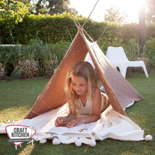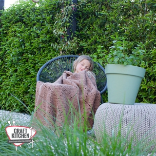 Anneke: 'Deze doek is een fijne schaduwdoek. Door de gaatjes komt er toch nog een beetje zonlicht en wind doorheen. Verder is de doek zodra de zon weg is ook prima te gebruiken als deken. Door een stuk touw via de gaten langs de zijkanten te rijgen en vervolgens aan een paal oid te bevestigen, maak je de schaduwdoek ergens makkelijk aan vast. Ook leuk om met 5 bamboestokken (van 1 meter lang) een schaduwtentje te maken.'