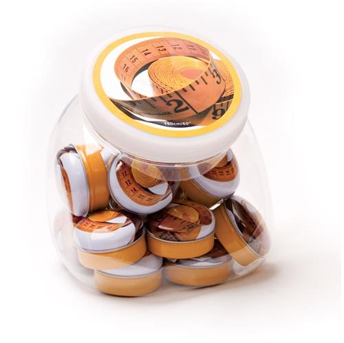 Hoe handig is dat, uw centimeter altijd netjes opgerold in een blikje.