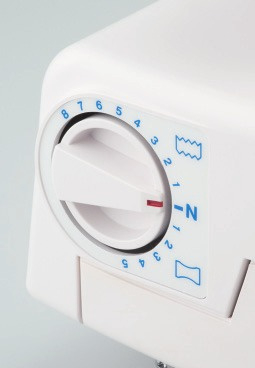 De machine is af te stellen voor rekbaar en niet rekbarenstoffen.